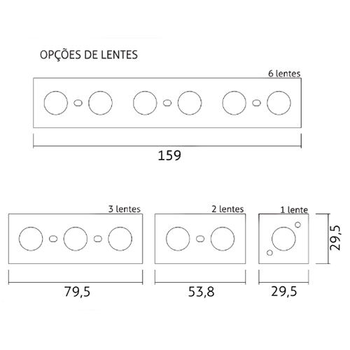 Módulos refletores com 1, 2, 3 ou 6 lentes individuais;