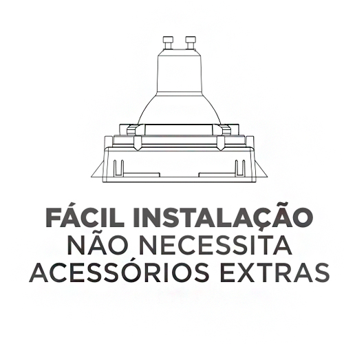 Projetado para oferecer praticidade, o Spot Embutido No Frame MR11 conta com sistema de troca de lâmpada pelo mecanismo “click”, que facilita a manutenção sem a necessidade de ferramentas adicionais. Além disso, sua instalação é rápida e simples, dispensando o uso de acessórios extras, o que torna o processo mais ágil e eficiente.